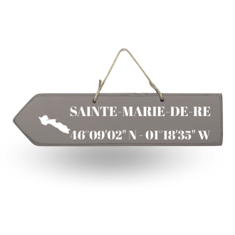 Wooden sign - Île de Ré Left arrow Discover our collection of wooden directional signs from Île de Ré. You can decorate your interior or exterior with them, and they are easy to attach thanks to their string.  The inscription ‘ILE DE RE’ is accompanied by its geographical coordinates and a map...