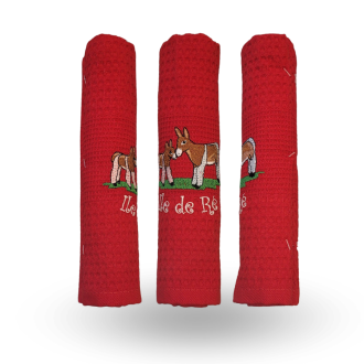 Embroidered tea towel - blue donkey Discover our collection of Île de Ré honeycomb tea towels. The tea towel is a very useful everyday souvenir to bring back from your Île de Ré vacation. Available in a range of colors, it's sure to bring a touch of Île de Ré to your kitchen. It's also a great...