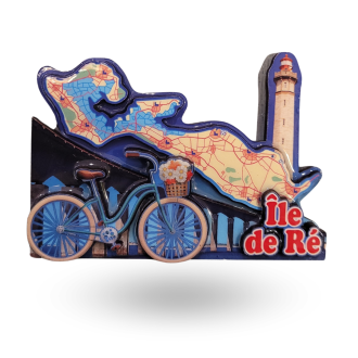 Ce magnet en relief représente la carte de l'Île de Ré avec les différents emblèmes comme le célèbre pont pour pouvoir y accéder à pied, à vélo et en voiture, mais aussi le Phare des Baleines, un